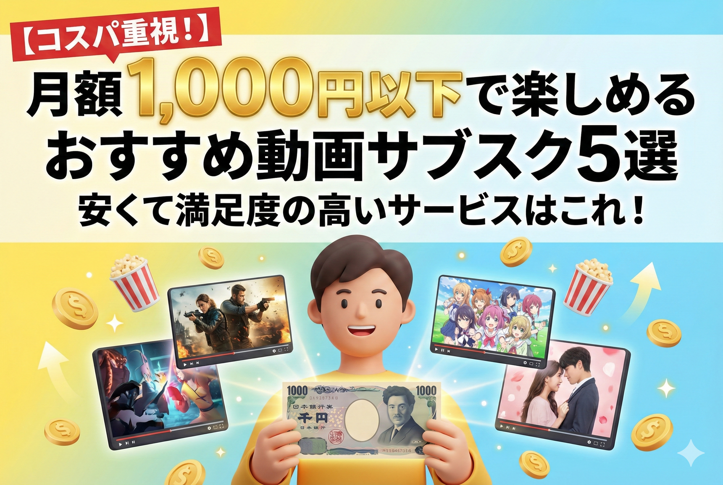 【コスパ重視】月額1,000円以下で楽しめるおすすめ動画サブスク5選|安くて満足度の高いサービスは?
