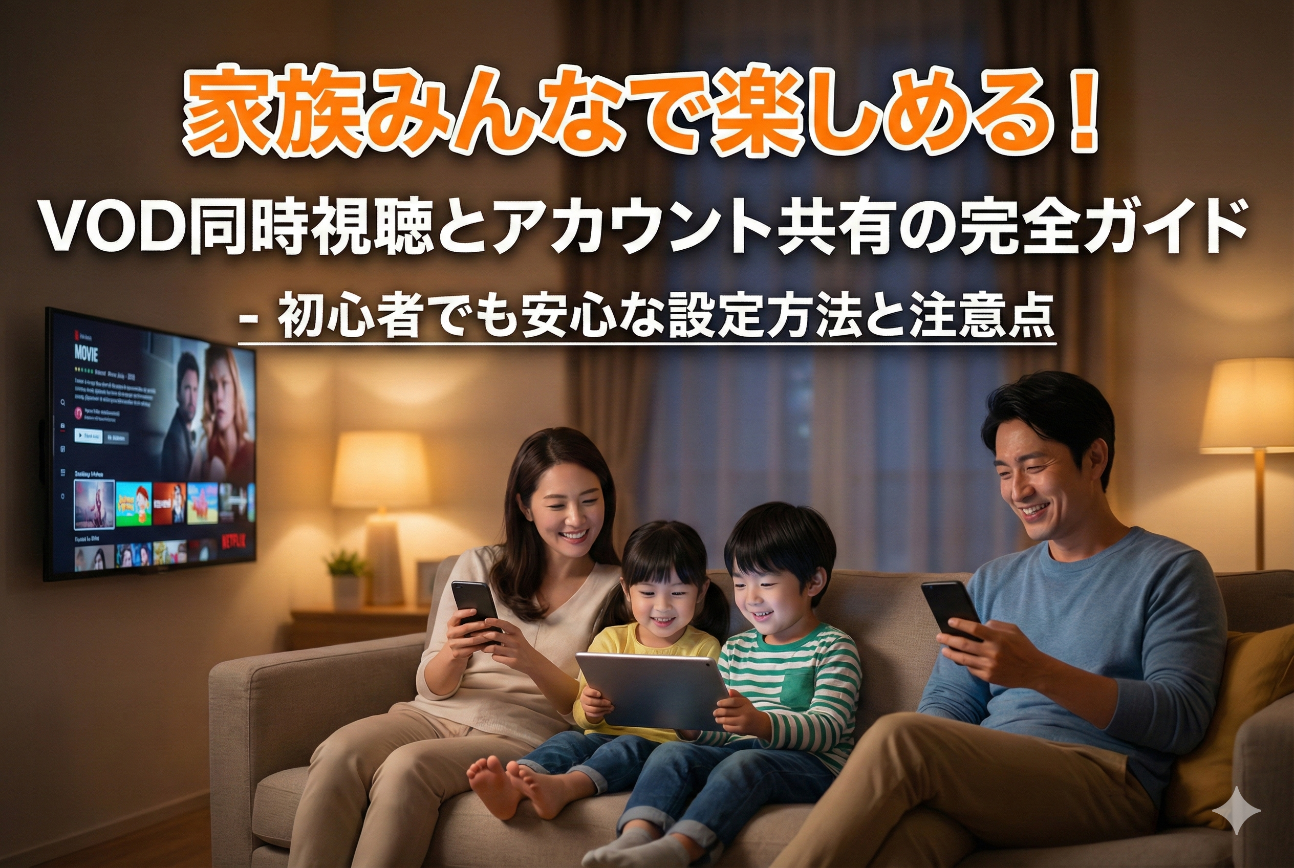 そんな想いを実現してくれるのが、VODの同時視聴・アカウント共有機能です。正しい知識を持って安全に利用すれば、きっと素敵な家族の時間が生まれることでしょう。